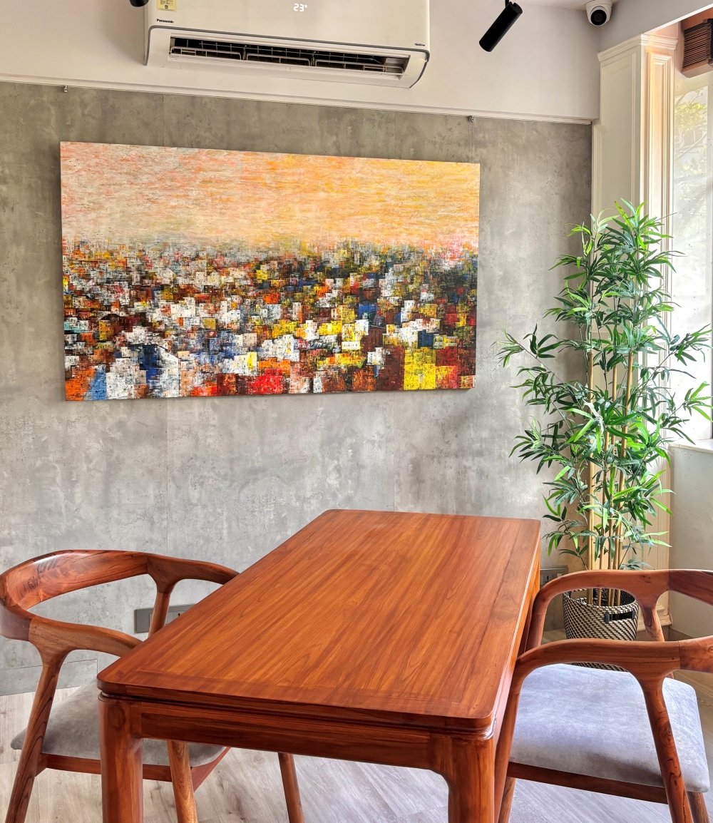 Unlike a traditional art gallery with a fixed inventory, our advisory-led model allows us to curate thoughtfully beyond what is physically on display. This enables a more personalised, thoughtful approach to art curation for homes, offices, and design-led spaces